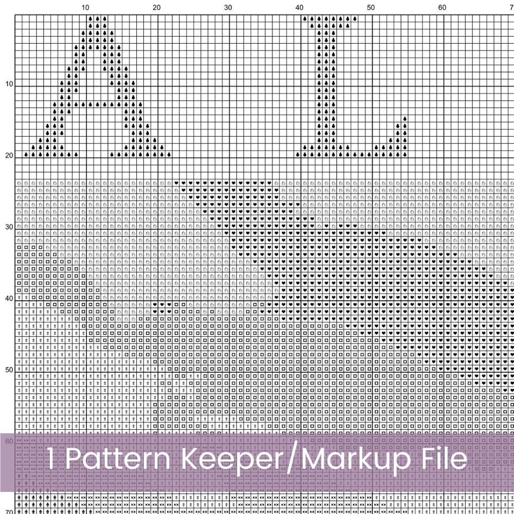 This instant downloadable pdf is an ideal beginner pattern with an easy cross stitch chart. In addition, a Pattern Keeper, Markup R-XP and iBook compatible pattern is included.