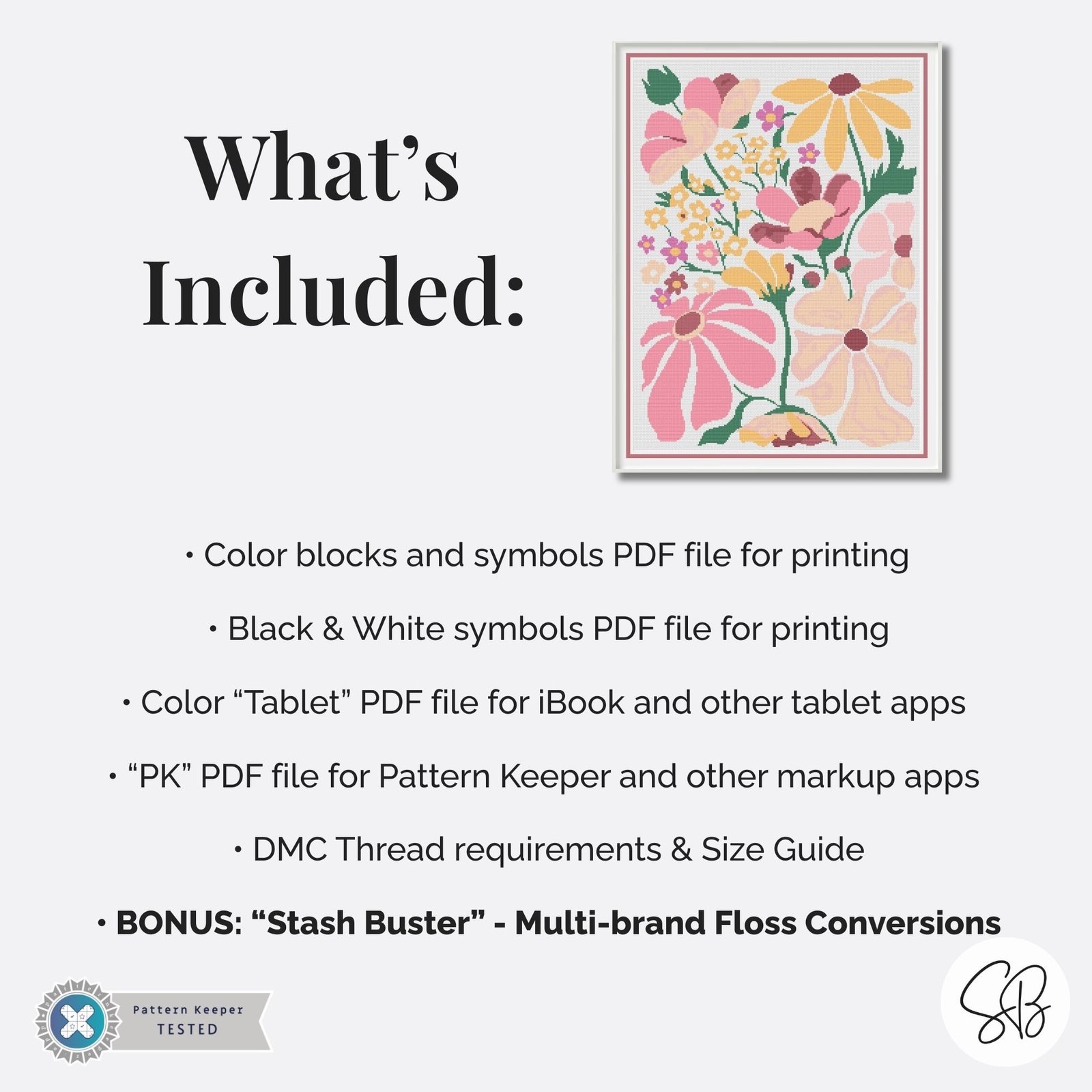 Boho Flowers Cross Stitch Pattern