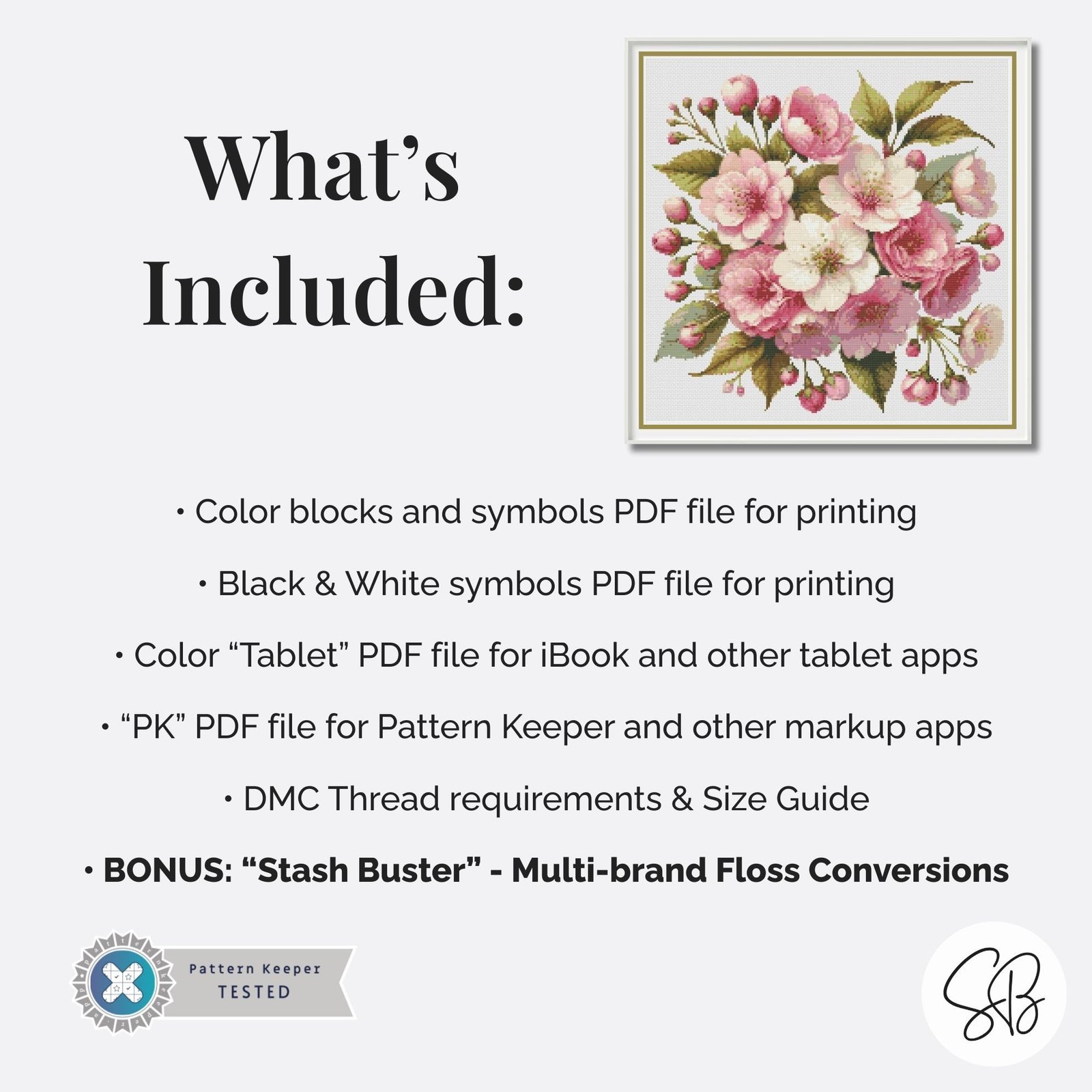 Please note this Cherry Blossoms Cross Stitch PDF Pattern is a digital item and does NOT include fabric or threads.