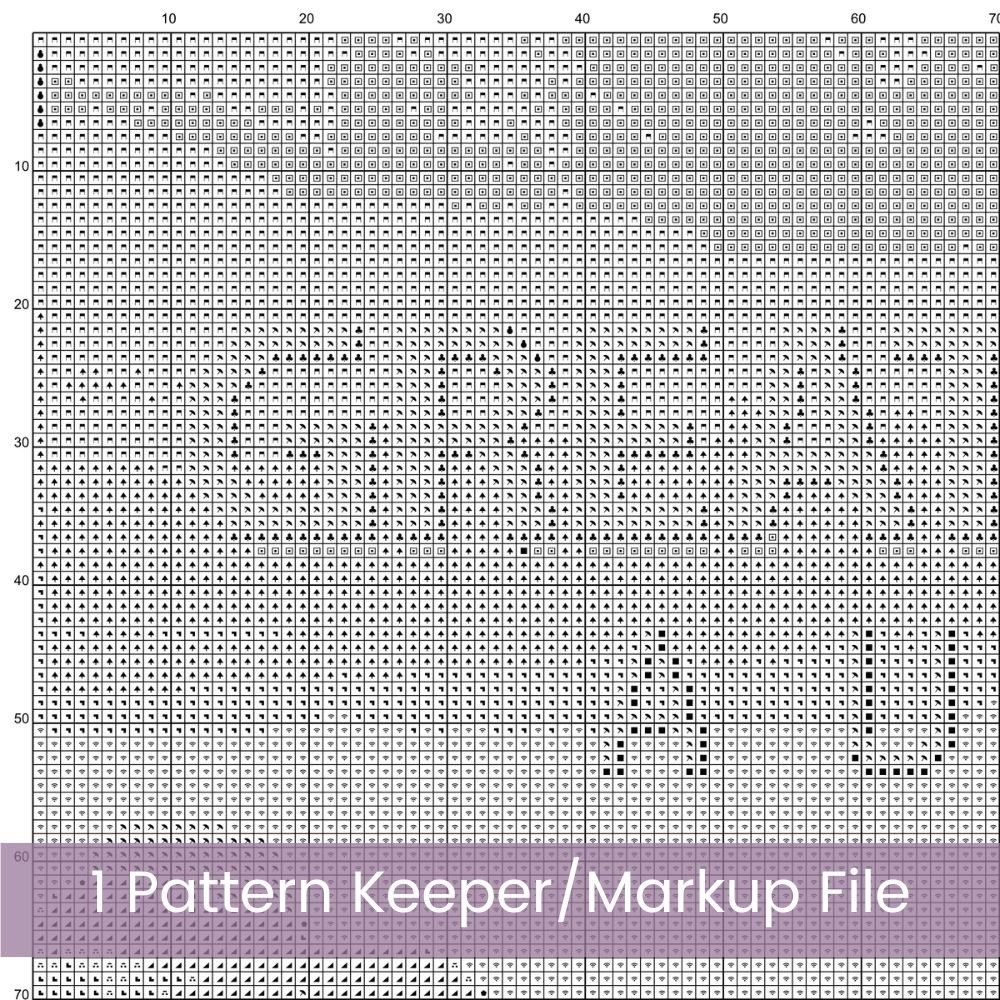 This instant downloadable pdf is an ideal beginner pattern with an easy cross stitch chart. In addition, a Pattern Keeper, Markup R-XP and iBook compatible pattern is included.