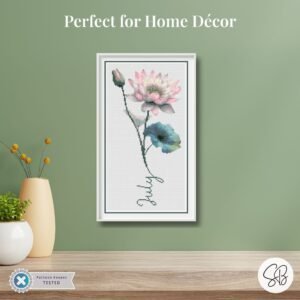 Celebrate July birthdays with this elegant Water Lily cross-stitch pattern, the official birth month flower for July 🌸. This beautiful design features a delicate water lily in soft shades of pink and white with lush green leaves, stitched in a partial coverage style so the background fabric shows through for a light, modern finish.