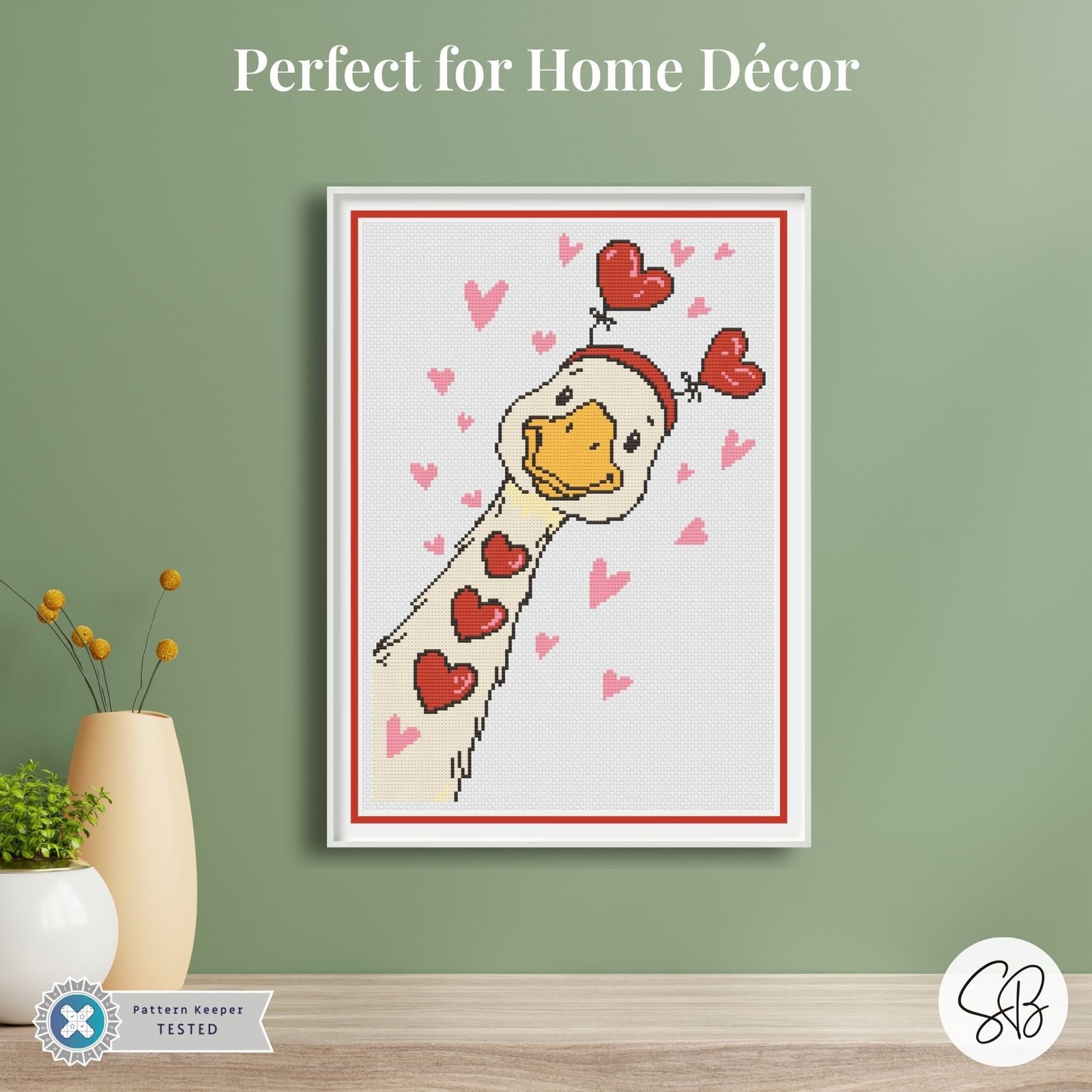 Add a touch of playful charm to your stitching with this adorable silly goose cross stitch pattern! This whimsical design features a curious cartoon goose peeking in from the side, decorated with heart accents, a festive heart headpiece, and floating pink hearts all around. Perfect for Valentine’s Day, love-themed décor, or anyone who enjoys cute and quirky stitching projects.
