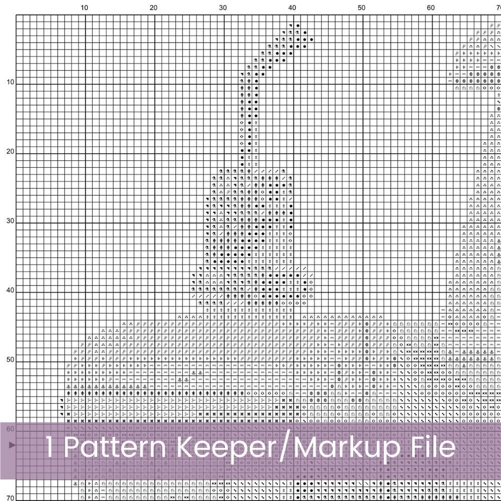 This instant downloadable pdf is an ideal beginner pattern with an easy cross stitch chart. In addition, a Pattern Keeper, Markup R-XP and iBook compatible pattern is included.