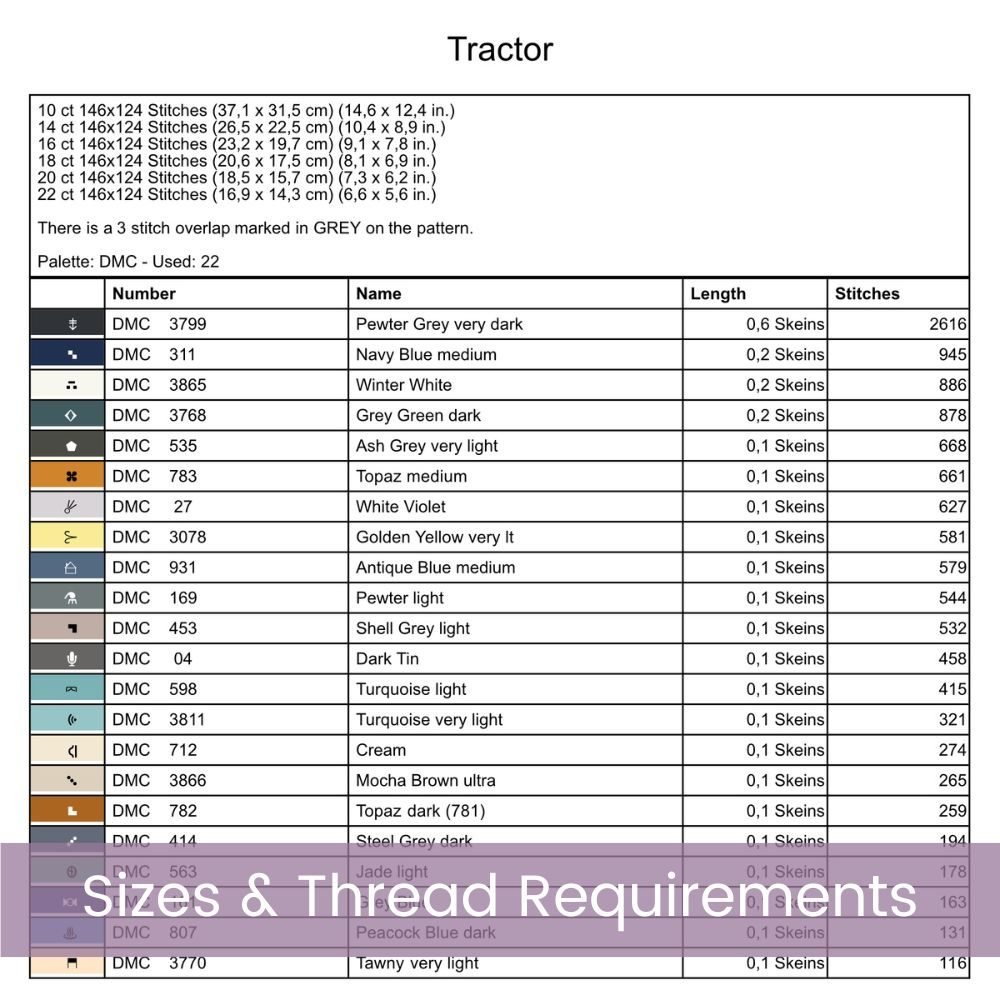 Please note this Tractor Cross Stitch Pattern is a digital item and does NOT include fabric or threads.
