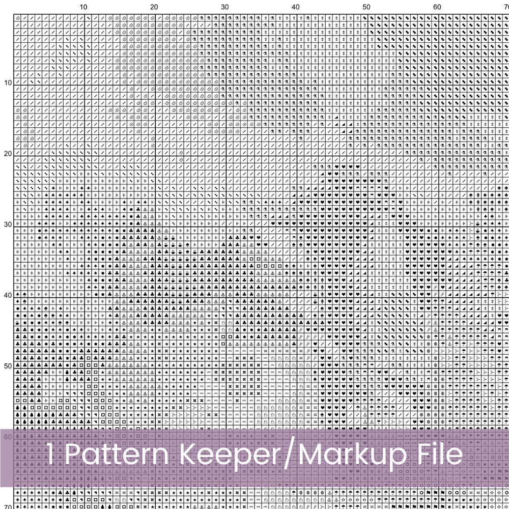 This instant downloadable pdf is an ideal beginner pattern with an easy cross stitch chart. In addition, a Pattern Keeper, Markup R-XP and iBook compatible pattern is included.