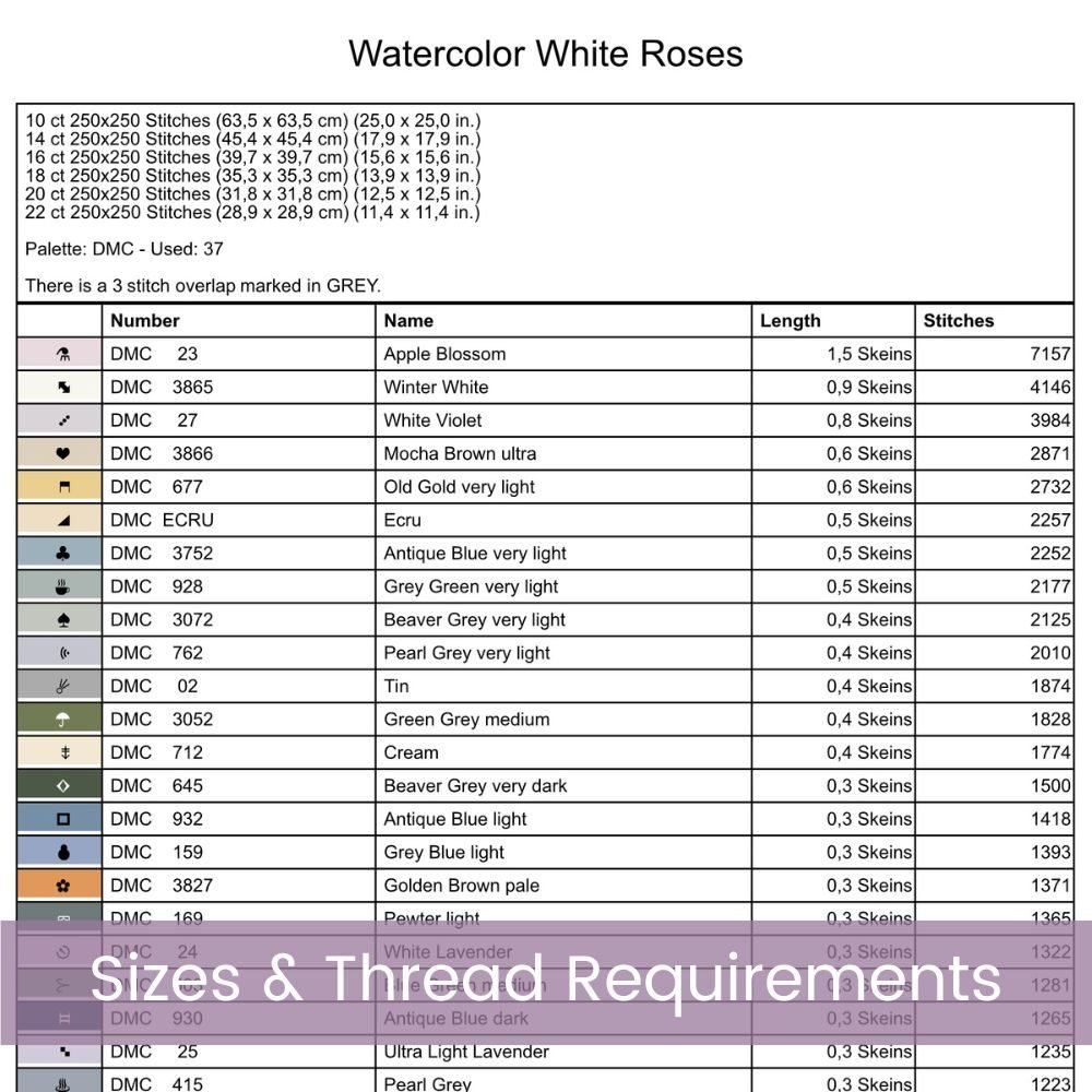 Please note this White Roses Counted Cross Stitch PDF Pattern is a digital item and does NOT include fabric or threads.